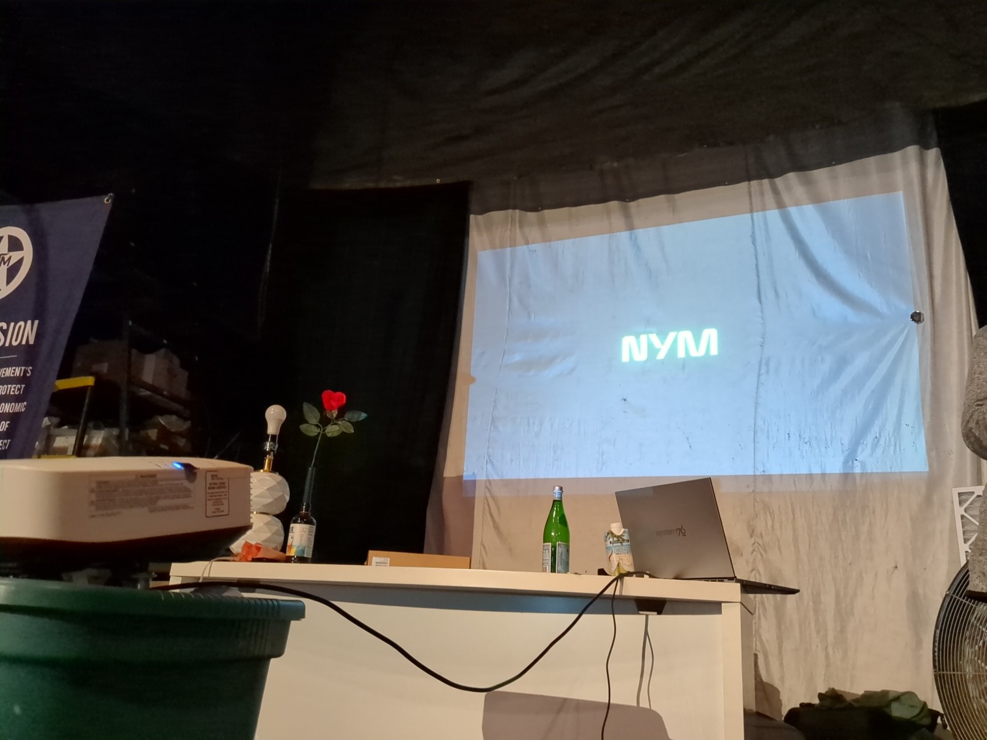 . The venue was a very cool hackerspace and lab that builds and supports privacy projects. We couldn’t have asked for a better venue to host us. Presentations began at 7 pm and finished around 9:45 pm. There were Nym stickers and 1-month NymVPN promos for interested attendees. This was the largest event we’ve presented in regarding Nym. Also the largest amount of interested attendees in checking out NymVPN. Along with the presentation, we played the Noise Generating Mixnet video. I opened the privacy meetup with the NymVPN presentation.