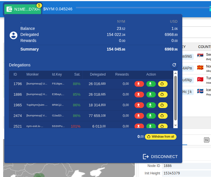 - Added a wallet. As far as I know, the nymJS SDK was under maintenance, so I used cosmosSDK (@cosmjs). It turned out to be reactive, except for updating the balance after âWithdraw from allâ (Iâm working on that). I also added code to display data in USDT.