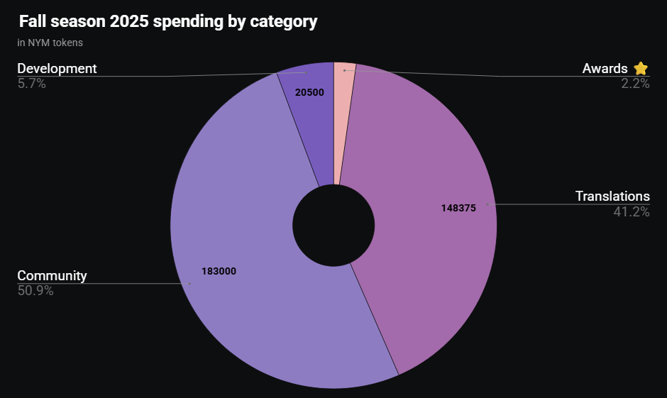 | @unclelem | Community | Nym meetup | Privacy lectures — Merch & other costs | 11,000 NYM | November 2025 |