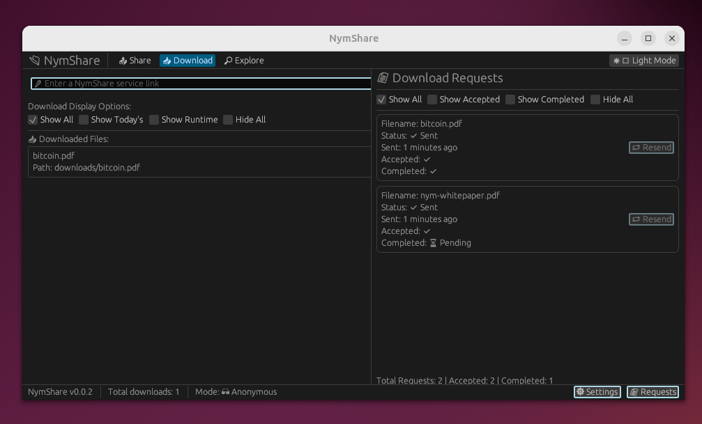 @rachyandco Done, I just merged the pull request, which includes the feature along with some additional changes: sidebar settings windows for both the Share tab and the Download tab, plus a sidebar for the download Requests. @ch1ffr3punk whenever you get a chance, take a look..
