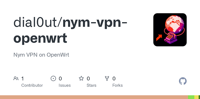 New release is ready! Release Nym VPN v1.25.0 Ā· dial0ut/nym-vpn-openwrt Ā· GitHub
